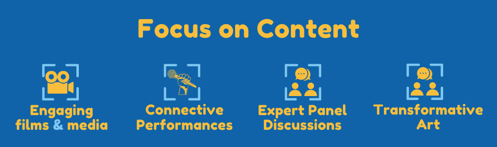 These one of a kind events encompass creative expression, multi-media, story-telling, live performance and technology to create a vibrant community with no stigma. Focus on Fests is an interactive community event aiming to increase awareness and decrease stigma through edutainment, celebration and advocacy. With an incredible program of interactive content from around the world and right here in Salt Lake City. Including youth and all ages programs.